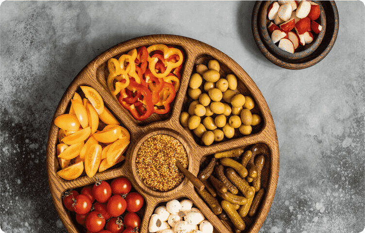 - Menazhnitsa is a deep plate divided into compartments for various snacks.